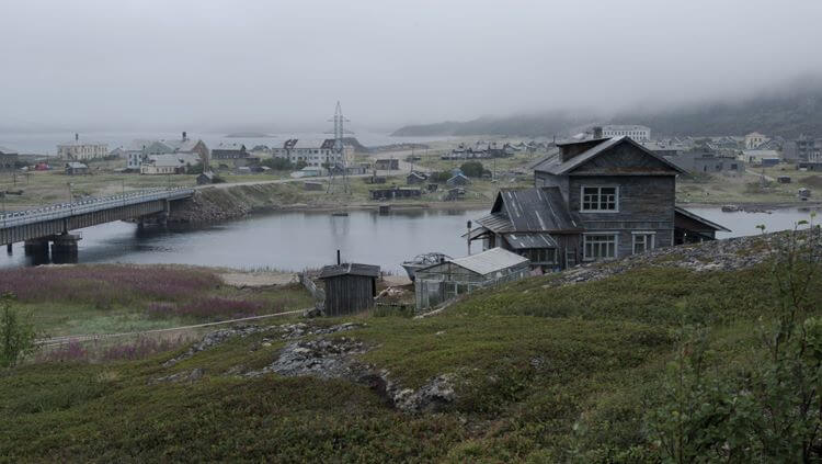 Aztán távoli motorcsónak berregését halljuk, és egy totálképben az apró motorcsónak, végigmetszve a Barents-tenger menti, azaz világvégi orosz város öblének vizét, a hajnali csöndben beúszik napjaink – ahogy ezt mondani szokták – „emberi és politikai valóságába”.
