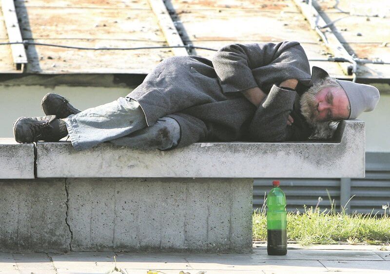Két, szinte sematikusan ismétlődő út vezet a hajléktalansághoz, majd a betegséghez. Az egyik út Borsod-Abaúj-Zemplén, Szabolcs-Szatmár-Bereg, Pest, Békés, Hajdú, Zala megyéből indul, de indulhat bármely, a nagyüzemi mezőgazdasági átállással felszabaduló és helyi ipartelepüléssel nem kompenzált, munkaerő-felesleggel jellemezhető megyéből. A hazai indusztrializáció és urbanizáció humán szempontokkal egyáltalán nem terhelt „modernizációs programjában” nem a kontraszelektált réteg indult el a városok felé. Sokkal inkább a törekvő, boldogulni akaró, nehézséget is vállaló fiatal, paraszti réteg. Elindult a jobb keresetért a városba, az építőiparba, a nagyüzemi fejlődést preferáló munkaerő-kereslet „hívására”. Vállalta a munkásszállói életformát, az ingázást, a családalapítás, a házépítés, bővítés reményében. De a család hiánya, a munkásszállói szabadidő sivársága és az alkohol megteszi a magáét. A családért vállalt erőfeszítés fordított eredményhez, a család széteséséhez vezet. S a késztetés az ivásra, az életmód beszűkítésére máris fokozódik. Munkaerőhiány címén a munkahely elnéző a rendszeres alkoholizálás iránt, s az jószerével elfogadott szokássá válik. Aztán — itt mennyire helyénvaló a képes beszéd —: betelik a pohár. Megkezdődik a lecsúszás a társadalmi lejtőn: üzemi munka helyett a kevésbé kontrollált építőipar, majd az alkalmi munka következik. A munkásszálló elvesztése után a család, illetve a munkahely elvesztése. Visszaút nincs, és tíz-tizenöt évi alkoholizálás biztosan elvezet a betegséghez, az alkoholbetegség pedig számos belgyógyászati, ideggyógyászati szervi károsodáshoz és szövődményhez. De az alkoholos életmóddal együtt jár sok kisebb-nagyobb baleset is, azoknak maradványai vannak, a poros, piszkos munkahelyek (szemétszállítás) vállalása, a kitettség az időjárási viszontagságoknak és az ehhez kapcsolódó légzési betegségek, a köhögéssel, köpetürítéssel járó gennyes hörghurut mind tovább rombolja a testet és a lelket, az egész embert. Az alkoholbetegek körében legalább tízszeres a tbc előfordulása — a normális átlaghoz képest —, a hajléktalanok körében pedig százszoros. Az alkoholbetegség legismertebb következménye, a leggyakoribbnak tartott halálok a májkárosodás, a májzsugor, de nem ritkább és nem kevésbé végzetes az alkoholos szívizomelfajulás, a heveny és idült hasnyálmirigy-gyulladás, az idegrendszeri szövődmény, és nagyon gyakori az öngyilkosság. Mindezek következtében országunkban tízezernél több — jórészt még produktív életkorú férfi hal meg évenként!