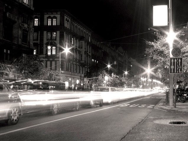 Középütt szaggatottan villódzott a terelővonal fehérje; két egyenlő félre metszette a néma izzást.