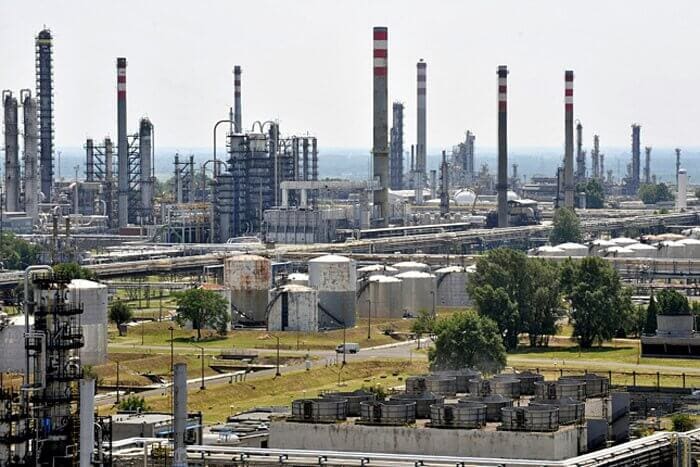 „…benzol, toluol, xilol, propilén, sztirol maleinsav, olajgőzök, hidrogénszulfid, hidrogénfluorid, sósav, kén-dioxid, szén-monoxid, szén-dioxid, nitrogén-oxidok, por, vanádium-oxid, nikkel-oxid, korom…”