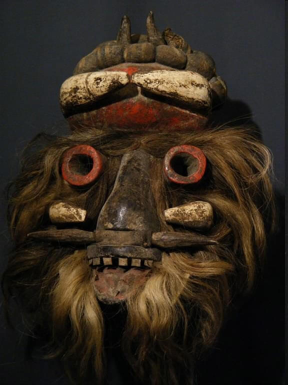 A közvetett maszk-emlékek, az álarcot viselő rajzolt vagy megformált alakok mellett az első fennmaradt maszktárgyak nem hasonlítani akarnak az emberarchoz, hanem különbözni akarnak tőle. Torz és torzított pofák ezek, melyeken gyakran keverednek állati és emberi vonások. Az orr helyén madárcsőr mered, a fej két oldalán állati fülek. Nem reálisan létező lényeket reprezentálnak, hanem a mágikus létszférát benépesítő alakokat. Akik hasonlítanak ugyan az ismert világ ismert lényeire, de inkább különböznek tőlük. A maszk átjárhatóvá teszi az utat a létszférák között: átvezet a más létmódban létező lények közé.