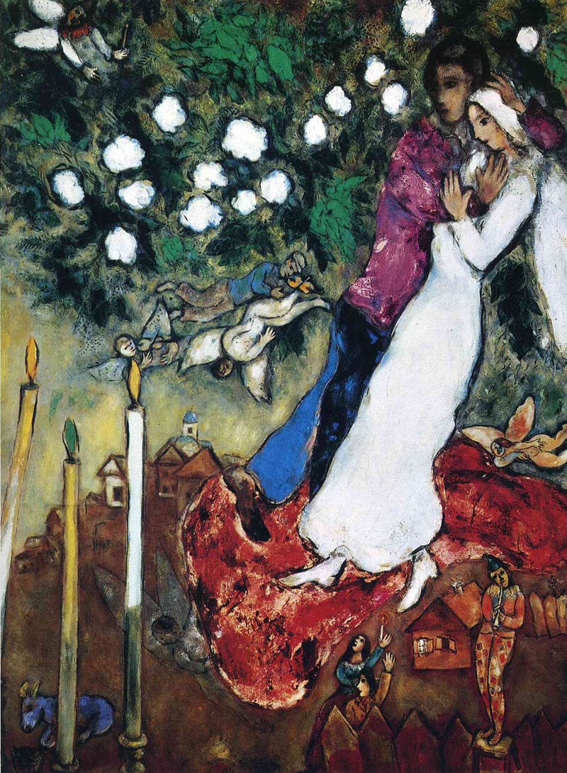 Chagall az elkövetkező években sokféleképp mutatja meg önmagát, de soha nem ilyen szépnek, szeretetreméltónak. Mesterére egyébként nem jellemző ez a festői látásmód, ő még közelebb áll a 19. századi orosz realistákhoz.