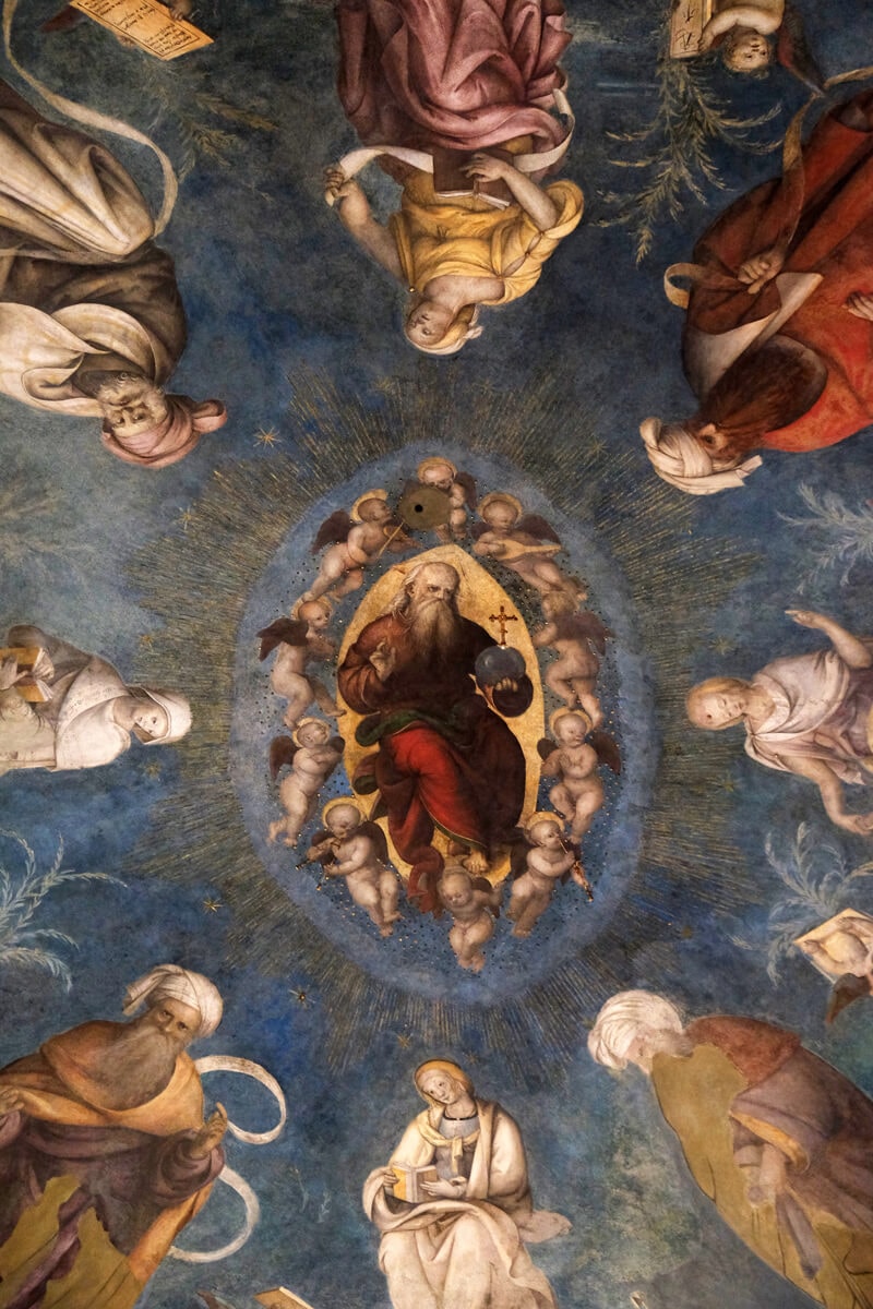 És egyszerre megértette, hogy a freskó figuráit a kupola homorúsága miatt festették torznak, de ez csak közelről látszik, lentről épp ettől olyan eleven a bibliai jelenet.