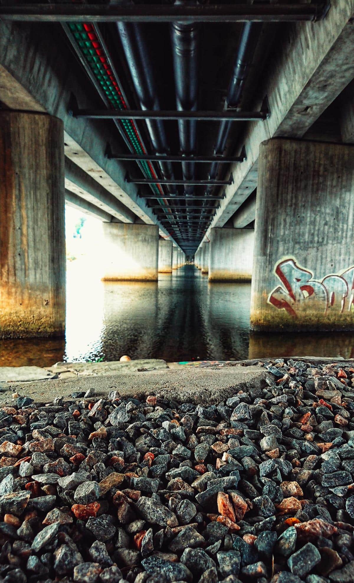 Az ál-öngyilkos-jelölt már felkapaszkodott a hídfő első szintjére, most a második szintre vezető szögvas-létrát próbálja elérni. A vaslétra szándékosan hiányos, hogy ne tudjon bárki felmászni. Egy alulról csúszó elemet kell a sínen feltolni és beakasztani, az egészíti ki a szerkezetet, amin már könnyedén felmegy az ember.