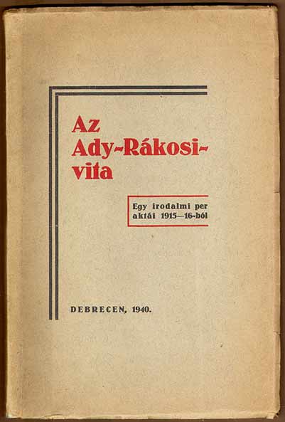 Az Ady—Rákosi vitának, gyakran egymás gyalázásának a sajtóban megjelent cikkeit részint idézve, részint a lényegét ismertetve egy 1940-ben kinyomtatott vékony könyv őrzi. Címe: Az Ady—Rákosi vita: Egy irodalmi per aktái 1915–16-ból. S az előszó jegyzetében: „Ezt a könyvecskét a debreceni zsidó gimnázium VII. és VIII. osztálya adta ki az 1939—40. iskolaévben 500 példányban. A könyv anyagának sajtó alá rendezésében kiváltképpen” (következnek a nevek) „VII. és VIII. o. tanulók buzgólkodtak. Munkájukat irodalomtanáruk, Kardos László dr. ellenőrizte.”