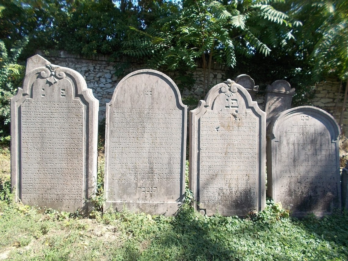 Formai szempontból a sírkövek az ősi keleti hagyományt idézik, azaz: a kövek tetemes része álló téglalap, félkör alakú záródísszel, koronával tetőzve. De látni szabályos hegyesszögben végződő köveket, illetve a gótika szellemét idéző csúcsíveket is. A román kori művészet késői visszhangja a feliratot keretező domború, vagy csavart oszlop. A szefárd[24] temetőkben kevésbé érvényesült a haszid befolyás, gyakoriak a fekvő sírtáblák és a szarkofágokra emlékeztető, téglalapok közé foglalt sírépítmények. Némelyik az ókori diadalívek formáját idézi.