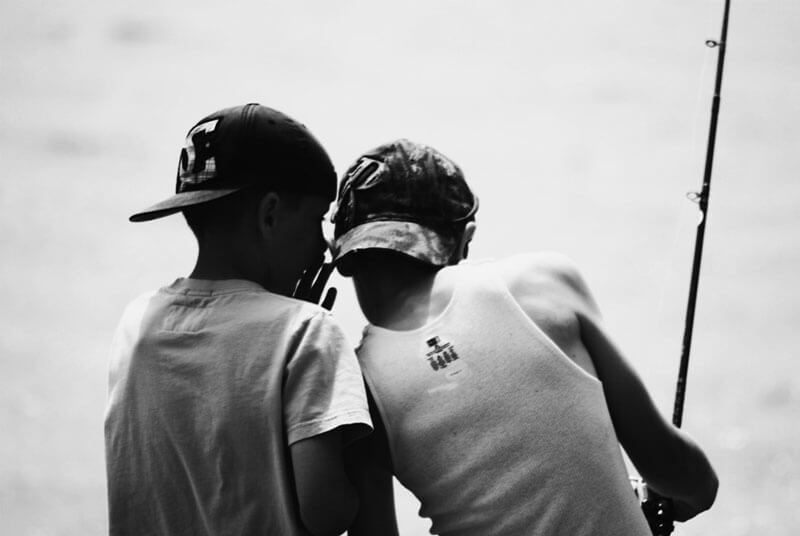 Amikor visszaérünk az intézet előtti térre, már várakoznak a látogatók a padokon. Ott áll apánk is, civilben, letámasztott Simsonja mellett. Néhányan kiválunk a sorból. Bátyám meg én odaszaladunk apánkhoz. Leguggol, magához ölel, szájon csókol bennünket. Rögtön felkéredzkedünk a motorra, Sanyi ül elöl, én mögötte belekapaszkodom. Köpködve berregünk. Apánk szigorú arcán halvány mosoly suhan át. Két zacskó savanyú cukrot halász elő zsebeiből. Rögtön feltépjük a fogunkkal és egyszerre több szemet is bekapunk.