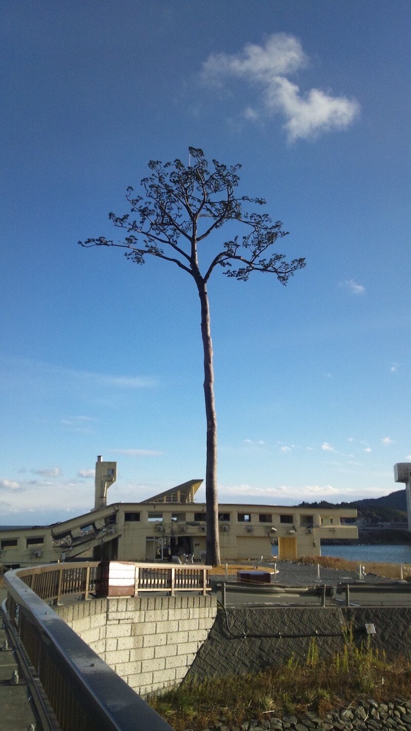 Elnémult a parton összegyűlt tömeg. Csecsemőknek torkán akadt a sírás, felnőtteknek a jajszó, elárvult öregek arcán a fájdalom grimasza mosollyá változott. Rikuzentakata erdejének egyetlen megmaradt fenyőfája égi látományként tündökölt a kelő nap glóriájában, és a remény szárnyai suhogni kezdtek Rikuzentakata romjai felett.