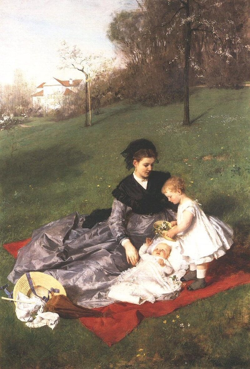 A Tigris 28 éves volt ekkor. Tanulmányait már két éve befejezte a müncheni Piloty-iskolában, már nem kellett a közös műteremben faunokat és gipsztorzókat festenie, s miután megszabadult az akadémia tematikus és stiláris kötöttségeitől, már megfestette az Anya és gyermekeit, elkészült a Hinta és a Ruhaszárítás vázlatával. A Hinta, ez az alig 54×43 cm-es remekmű Szinyei talán legmerészebb képe, ezzel került legközelebb az impresszionizmus színkezelési technikájához anélkül, hogy magának az impresszionizmusnak a létezéséről tudott volna. „Így lettem én a francia festők utánzója, mielőtt még tőlük egyetlen képet is láttam volna” – írja később önéletrajzában. (Renoir egyik főműve, amely szintén A hinta címet viseli, csak mintegy négy évvel később készült.) Míg a Hinta és a Ruhaszárítás szokatlanul újszerű színvilága (ecsetkezelése) jelenti az előtanulmányt a Majálishoz, az Anya és gyermekeiben azt próbálta ki, hogyan lehet harmonikus egységbe komponálni embert és tájat. Ezen a képen jelenik meg először a Majális jellegzetes kompozíciós eleme: a „függőleges rét”. Szinyei életrajzában említi, hogy müncheni kollégái szívesen ékelődtek vele emígyen: „Sinai mit der senkrechten Wiesen” (sic! – Szinyei az ő függőleges rétjeivel).