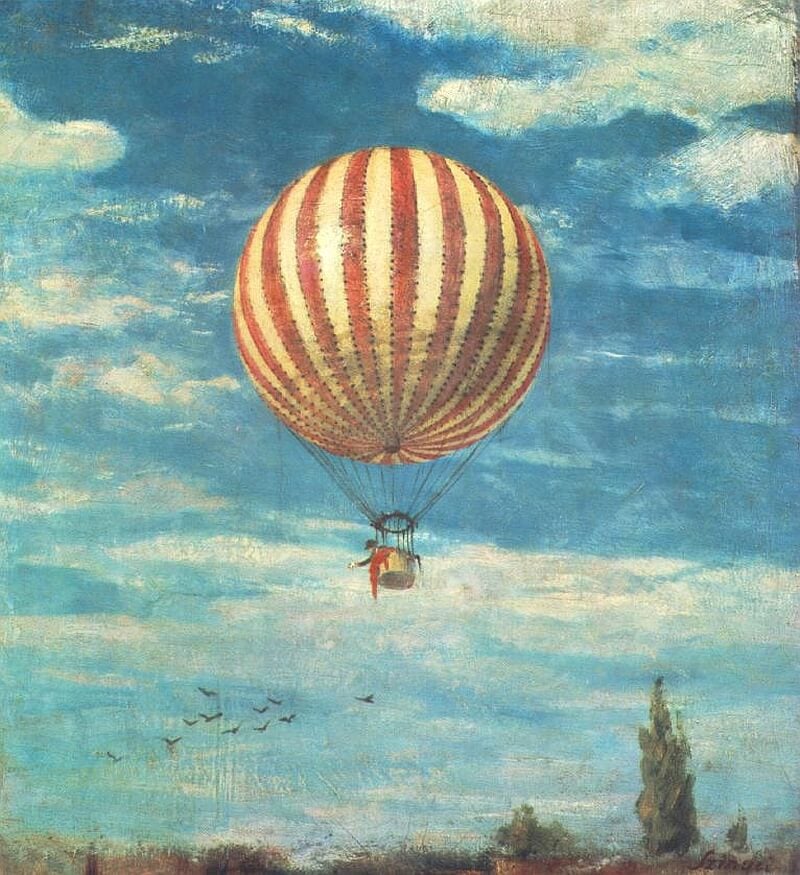 Szinyei Merse Félix hosszú szenvedés után 1875-ben tér örök nyugovóra. Az atya halála után a fiú egy pillanatra úgy képzeli, hogy visszatérhet a festéshez, de aztán újabb gyermekük születése s a gazdaság gondjai megakadályozzák ebben. Három évvel később, egy tavaszi napon, sógora, aki minden technikai újdonságért lelkesedett – fényképezett és csillagászati távcsöveket készített –, nagy családi izgalmak közepette léghajóra szállt. Ez az élmény csábította újra a festőállvány elé. A Léghajó című kis remekén végre megint megvillan a Majális festőjének varázslatos megjelenítő ereje. Mintha mégis sikerülne: „Legyőzzük a gravitációt!” Gundelfinger Gyula, aki mindig is nagyra tartotta Szinyei tehetségét, és sajnálta, hogy már évek óta nem fest, amikor értesült róla, hogy barátja újra kezébe vette a palettát, levelet írt fogadott lányához, Zsófikához. „Kérlek, serkentsd mindig munkára, amint ezt nem egy kiváló mester felesége tette, mint pl. a német Düreré is… Te azt írod: Pali most több képpel egyszerre akar fellépni, s ha ezekkel nem arat sikert, teljesen szakít a festéssel s egészen a jernyei gazdaságnak fogja szentelni az életét. Az Isten szerelmére! Milyen gyerekes gondolkodás ez! Mindent egyetlen kártyára akar tenni, s ha nem üti meg rögtön a főnyereményt, mindent félredob. Ha Isten kegyelméből való tehetségét eltemeti, soha – mondom – soha nem lesz többé boldog. Mert semmi sem bosszulja meg magát annyira, mint a művészi munka elhanyagolása, ha igazán tehetséges az ember.”