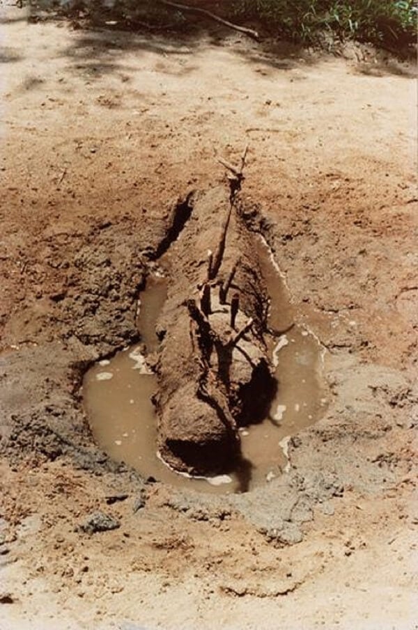 A természetben létrehozott performansz nézők nélkül valósult meg. A művész egyedül hozta létre vagy csak a fotózáshoz kért segítséget. Így a mű eredeti formájában láthatatlan, „csak” dokumentációként ismerjük: fotón, filmen. Vagyis a néző kimarad az elsődleges élményből; bizonyítékokkal találkozik, abból következtet vissza a létrehozás körülményeire. Mendieta több mint száz változatban megvalósult Siluetas-kísérletei a jelenlét és a láthatóság kérdéseit vetik fel. Olyan speciális land art művek, amelyeken a művész szerepe csak áttételesen érzékelhető: eleinte jelen van a (női) figura, majd az ő hűlt helyével szembesülünk, és mindezt csak fényképeken látjuk[14]. A természeti környezet nem marad érintetlen, de nem vizsgálható, nem okoz visszafordíthatatlan változást a tájban. A művész hatása kézzel fogható, de ártalmatlan a környezetre: mintha virágot ültetne a földbe, a természettel összhangban cselekszik.