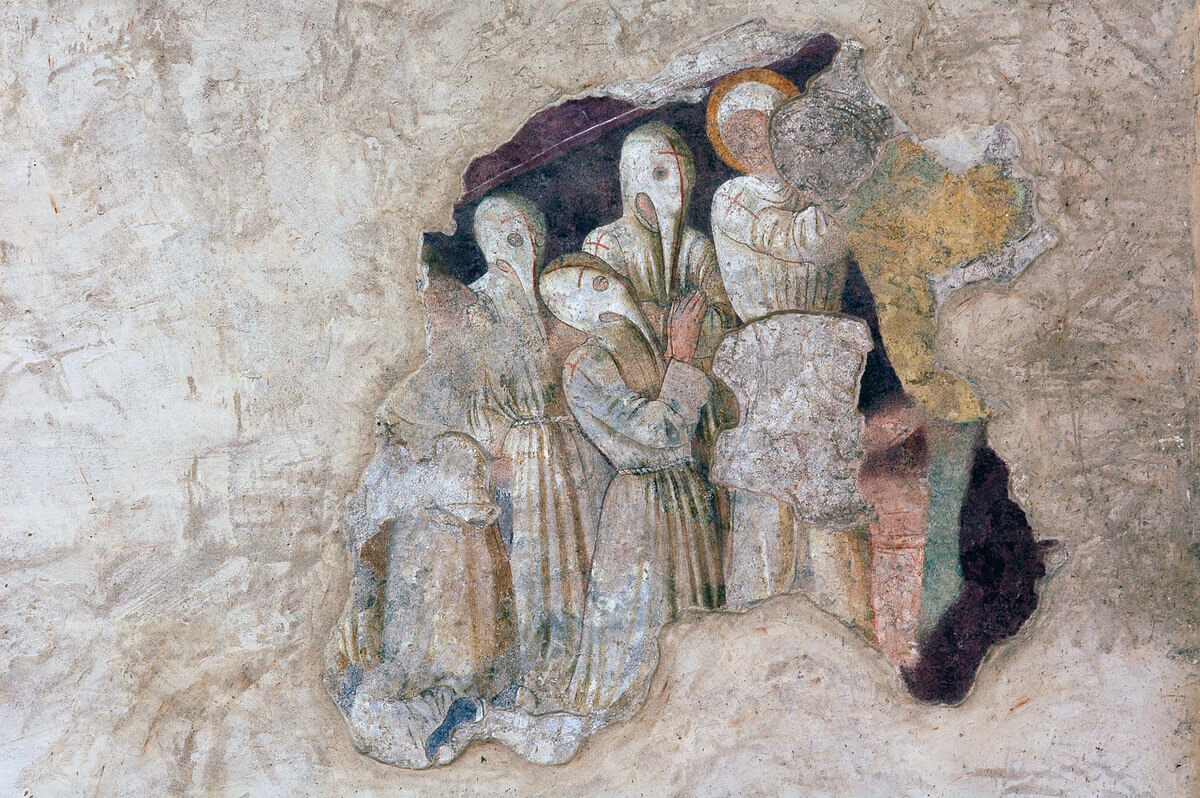Egy-egy palást, köpeny, a városfal széle vörösbe vált, finoman, mint a zenében a visszafogottan kanyargó cifrázatok: egységben van itt minden, mint a szív burkában; egyenletesen pulzál az élet, itt evidens minden, mint a percenkénti 70 lüktetés és 16 lélegzetvétel. Ez a város már készül Szent Katalinra, aki majd a pápát is visszahozza Avignonból, ebben a városban minden sikerülhet, mert benne az Igazság, Egység, Közjó és Biztonság uralkodik.