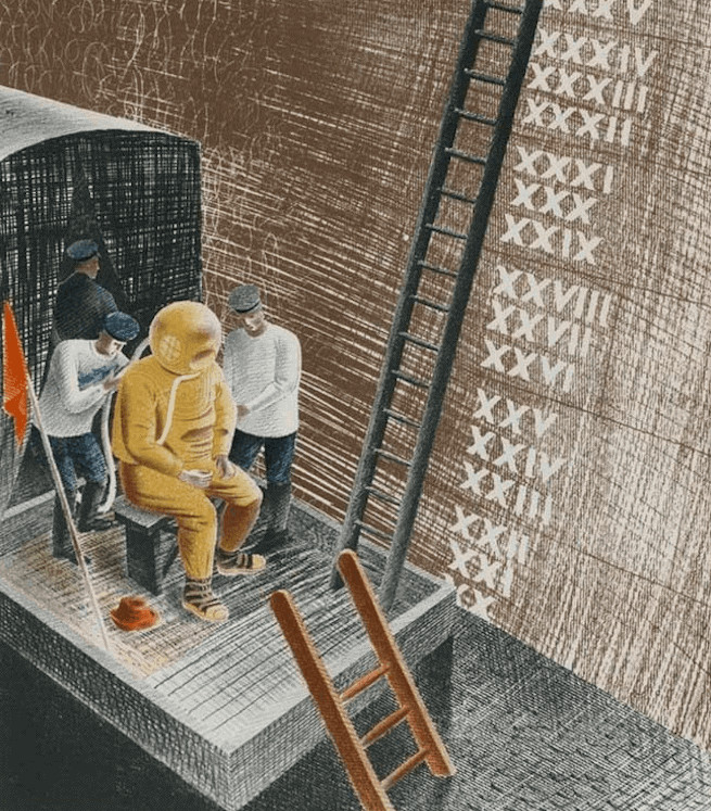 Úgy is mint kedves látogató, az első acéllétrán leereszkedem. Hatalmas torpedó tűnik fel a fejem magasában, fenyegetőn hever a millió merev és érthetetlen célú cső, traverz, vezeték meg szegecs között. Lehet vagy hat méter. Forgattyúk, tolattyúk, lökettyűk, dugattyúk, sikattyúk, billentyűk, páncélos karmantyúk – elképesztő mélyre látok le a hajó gyomrába, ahová – noha hol itt, hol ott egy vaslétrácska, felhajtható drótfedél – lemászni se merszem, se nem szabad. Az egész azt hirdeti, hogy még mindig nem vagyunk túl rajta.