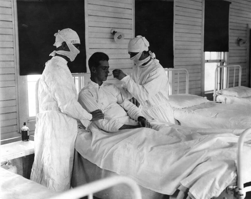Ennek a 100 évvel ezelőtti fotónak a címe: „Spanyolnátha egy amerikai hadikórházban”.