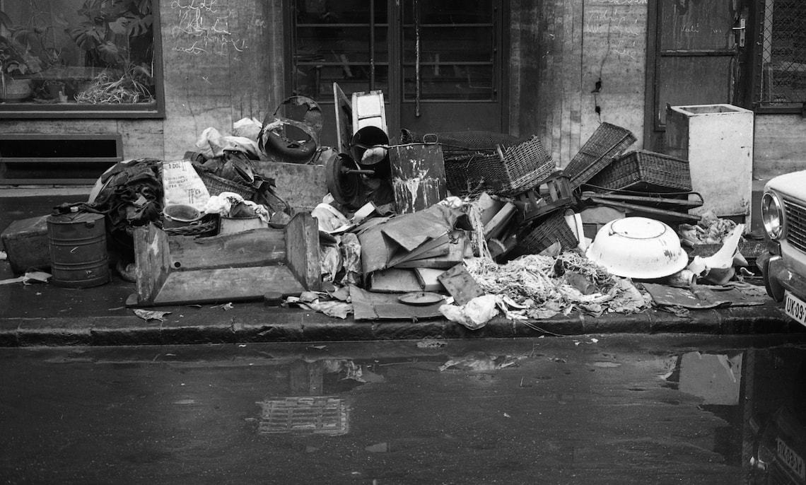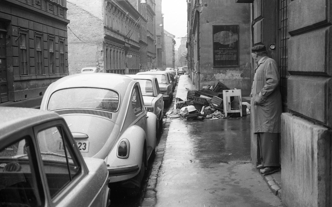 Volt, hogy a meghirdetett lomtalanítási napon nem szállítottak, s másnap, harmadnap is ott éktelenkedtek a roggyant kredencek, a rozsdás tűzhelyek, javíthatatlan hűtőgépek, kibelezett rádiók, zsákszám a szemét – incselkedően tátogtak a kupacok, hogy közelítsek újra, még egyszer, alaposabban; nincs két összetéveszthető halom, némelyik elterpeszkedő, lompos, van karcsú és kellemkedő, aztán szánnivalóan együgyű és van bumfordi-groteszk, amelyik somolyog és kacsint – végigpróbáltam. Ebben az évben időre érkezett a szemétgyűjtő kocsi, s estére a lomok helyén csak por maradt, papírfoszlány: meglátszott, hol voltak, hogy módszeresen összeszedték valamennyit. Baktattam egyiktől a másikig, a hűlt helyek között, hátam mögött kamera dolgozhatott: mint egy megható szerelmesfilm végén.