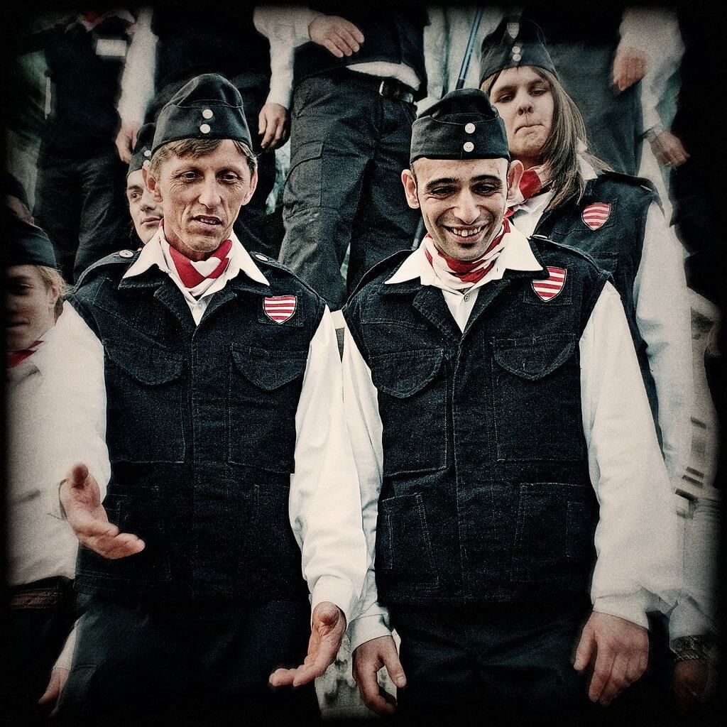 A közösségi önértékelés megzavarodásának egyik feltűnő jele a napi politikában a viszony bizonytalansága a külvilághoz – ahogyan arra Bibó az egész régióra vonatkoztatva rámutatott – a „váratlan meghunyászkodás” és a „teljesítmények állandó hangoztatása,” a csatlósmentalitás[12] és a külső szemlélő számára komikus nacionalista melldöngetés[13] szélsőségei közötti ide-oda mozgás.