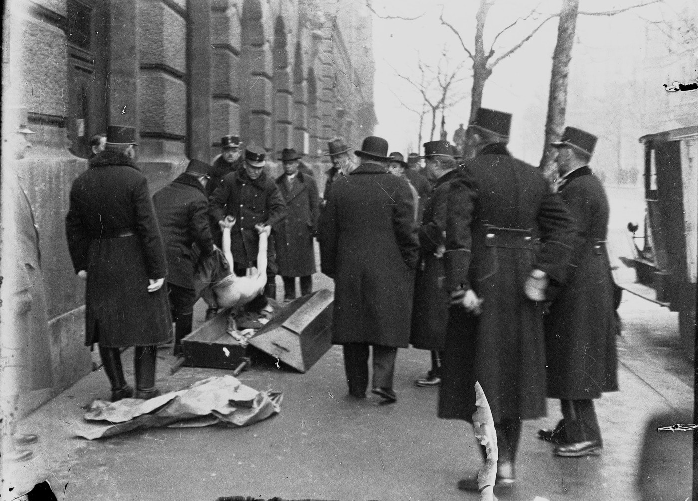 Valaki összeesett és meghalt a váltó-üzlet bejáratánál. Hivatalos emberek érkeznek, kalapban, prémes télikabátban, egyenruhában. Öt rendőr, néhány nyomozó.